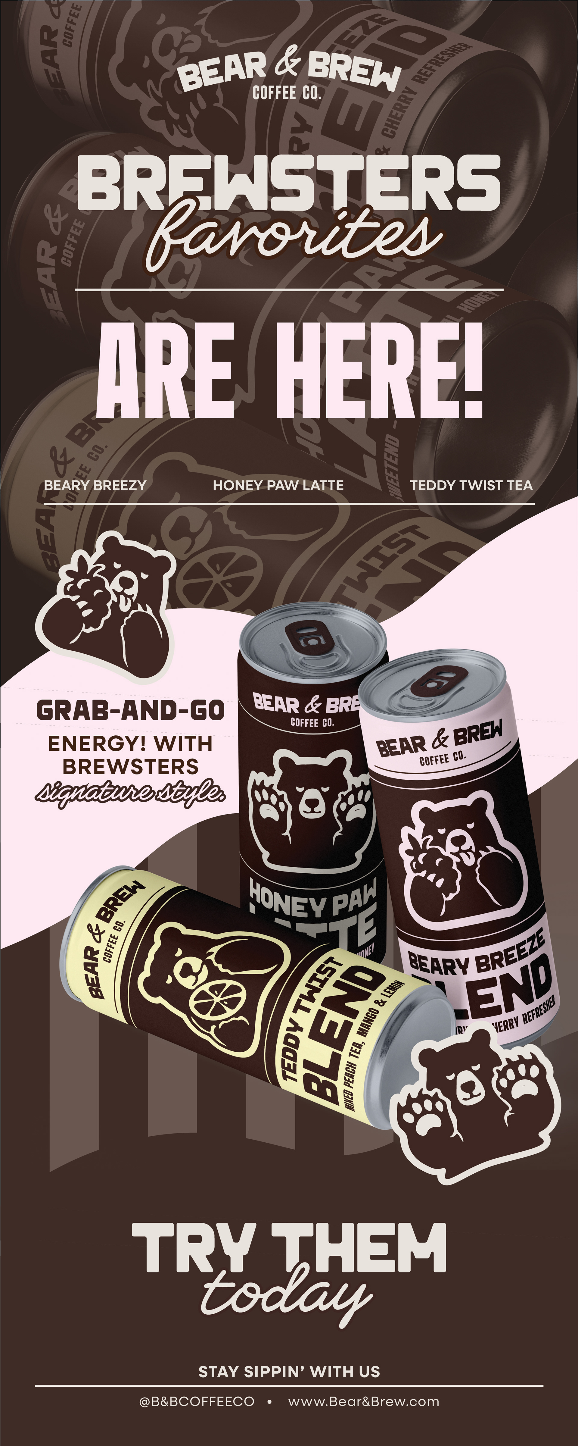 Bear & Brew Co. was designed to feel cozy and comforting. The bear was chosen as the core symbol to represent comfort and reliability, encouraging customers to slow down and enjoy the experience.